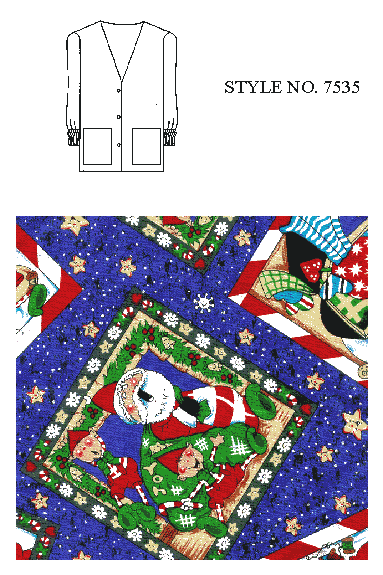 7535 LADIES CARDIGAN WARM-UP SCRUB JACKET CHRISTMAS PRINT Price: xs-xl $18.99 .... 2x - 3x $21.99