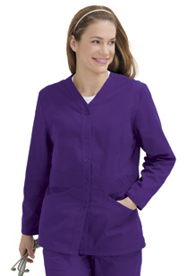 seams for a contoured fit. Five-button front closure and